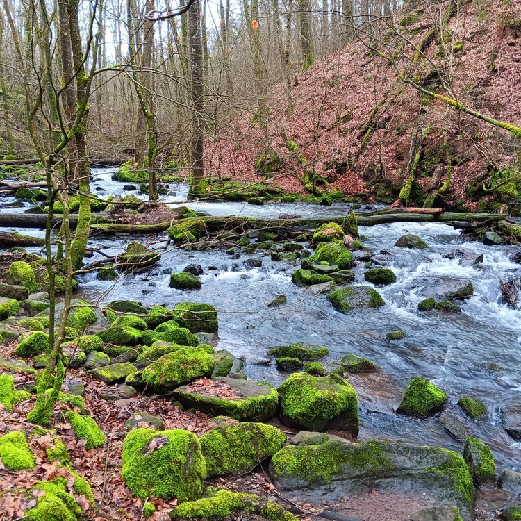 Die Holzbachschlucht ist das älteste Naturschutzgebiet der Region und ein besonderes Naturerlebnis. Dieser kurze Rundweg beginnt direkt am Hofgut Dapprich und führt Sie in die urwüchsige Schlucht mit ihren großen Felsbrocken und dem kleinen Wasserfall am nördlichen Eingang. Die Wege sind leicht begehbar und der perfekte Einstieg für einen entspannten Tag.